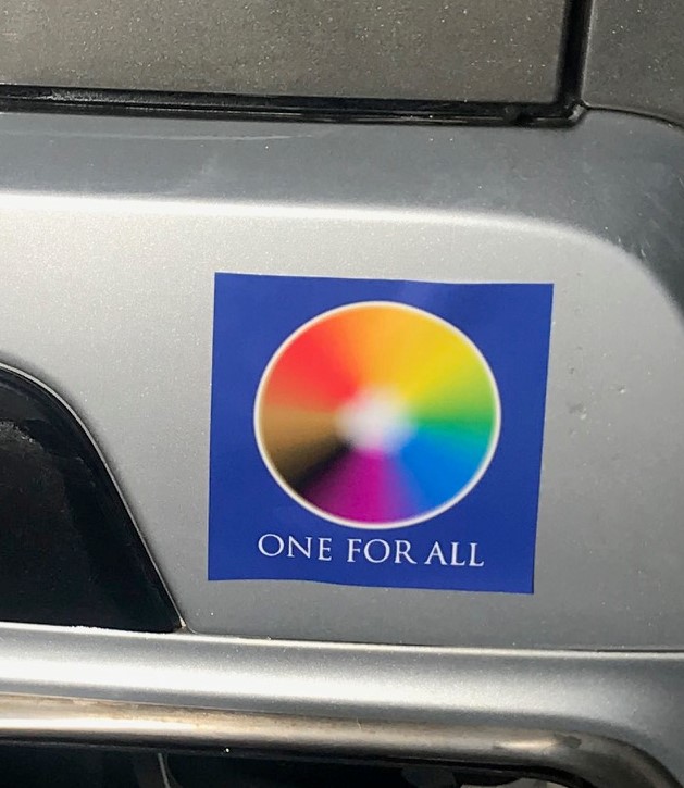 So my thought was, “What if we didn’t have two flags? …What if we had just one flag…for all of us?” What if we had one flag so when it was hung in front of a classroom, or in front of anywhere, it sent this message to that 9th grader, “It doesn’t matter if your straight or gay or LBT or Q…come on in. You are welcome here. We can talk to each other and learn about each other.” How great would that be.